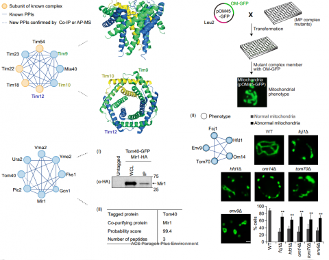 Jin K, Musso G, Vlasblom J, Jessulat M, Deineko V, Negroni J, Mosca R ... Aloy P, Zhang Z, Babu M, While detailed, focused mechanistic analyses of associations among mitochondrial proteins (MPs) have identified their importance in varied biological processes, a systematic understanding of how MPs function in concert both with one-another, and with extra-mitochondrial proteins remains incomplete. Perhaps consequently, many questions regarding the role of mitochondrial dysfunction in the development of human disease remain unanswered. To address this, we compiled all existing mitochondrial physical interaction data for over 1,200 experimentally defined yeast MPs, and, through bioinformatic analysis, identified hundreds of heteromeric MP complexes having extensive associations both within and outside the mitochondria. We provide support for these complexes through structure prediction analysis, morphological comparisons of deletion strains, and protein co-immunoprecipitation. The integration of these MP complexes with reported genetic interaction data reveals substantial crosstalk between MPs and non-MPs, and identifies potential novel factors in endoplasmic reticulum-mitochondrial organization, membrane structure, and mitochondrial lipid homeostasis. More than one-third of these MP complexes are conserved in humans and contain members linked to clinical pathologies, enabling us to identify genes with putative disease function through guilt-by-association. Although still remaining incomplete, existing mitochondrial interaction data suggests that the relevant molecular machinery is modular, yet highly integrated with non-mitochondrial processes.